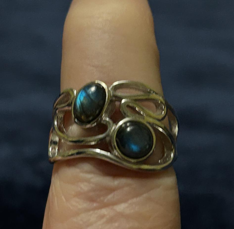 Extraordinaire big silver ring with very rare, beautiful, genuine Labradorite, Lapis Lazuli, Rose Quartz ,Rainbow Moonstone, Amethyst