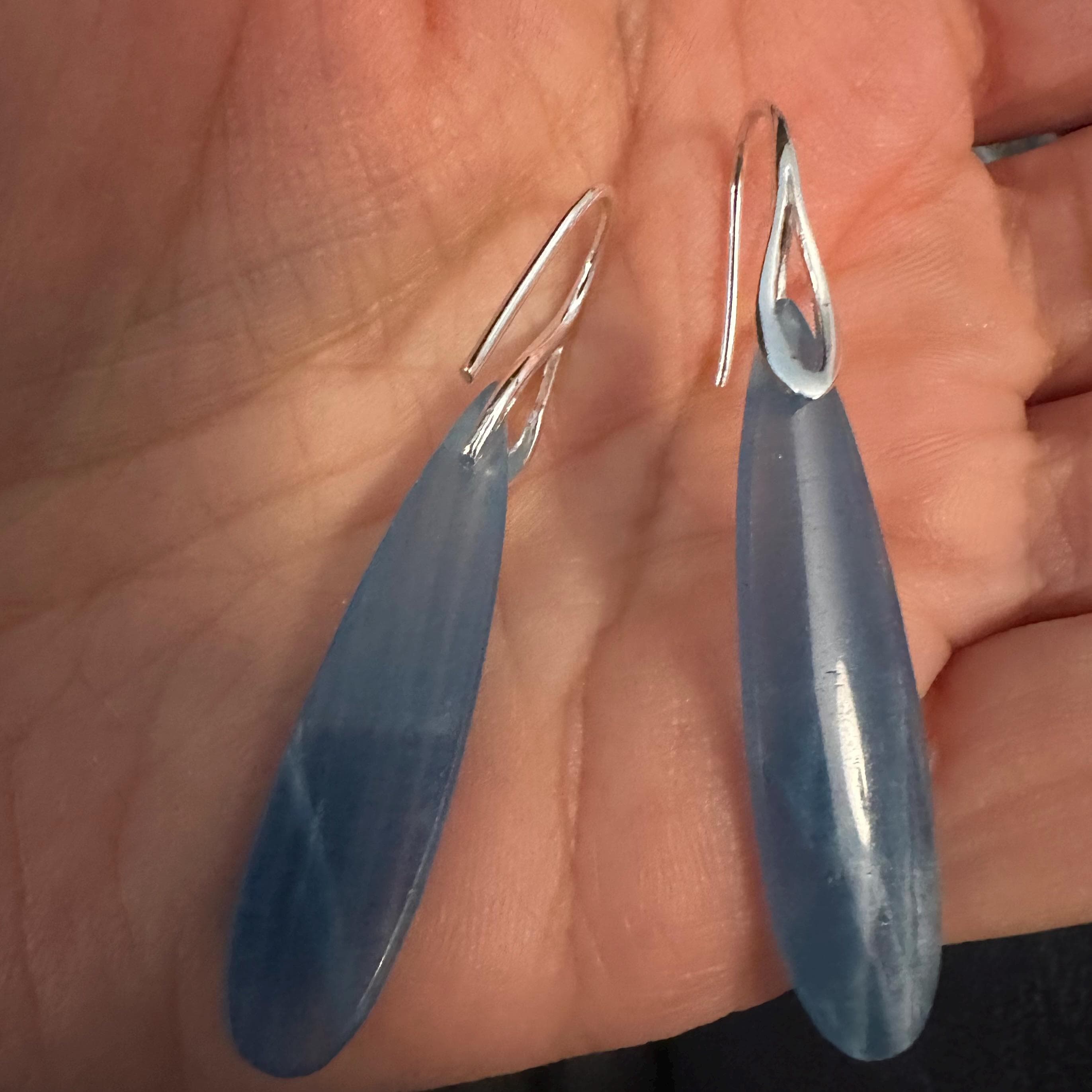 These ear hooks are really cool on a pair of Argentina Lemurian Aquatine Blue Calcite teardrop stones! Always great shipping and service! 💕