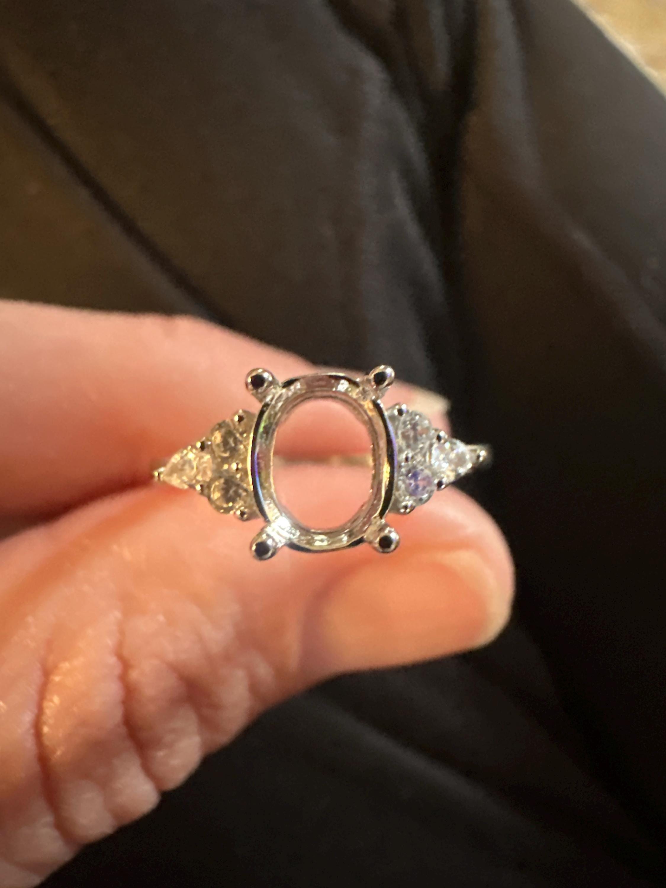 The setting fits most 6x8mm gemstones, making it ideal for opals, moonstones, sapphires, or custom-cut cabochons. The sleek band and side accents offer just the right touch of sparkle without taking away from your centerpiece. Made from genuine .925 sterling silver, this ring base is polished, professional, and easy to work with.