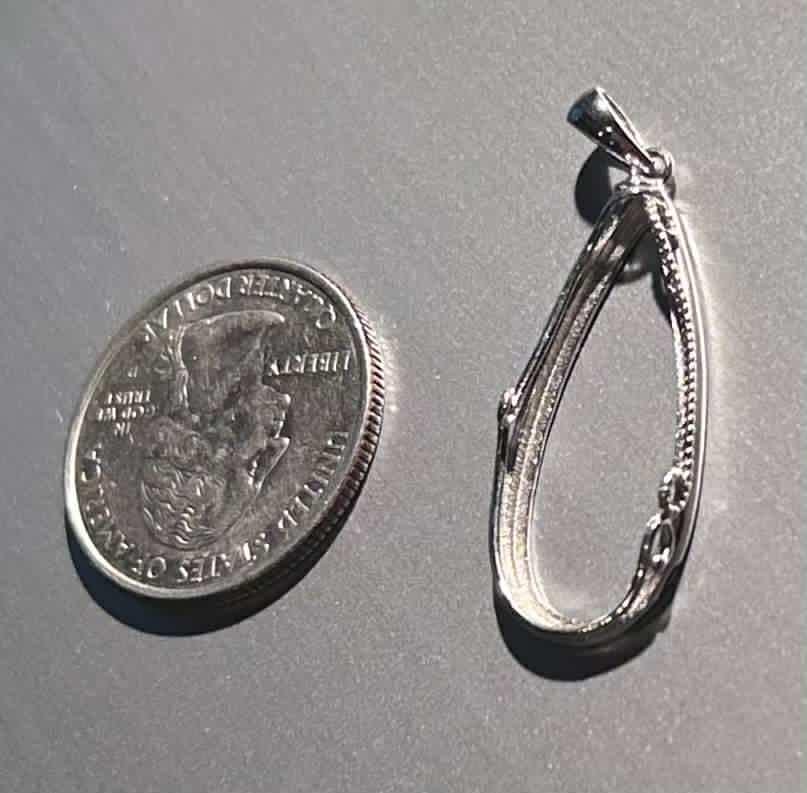 Create elegant, custom jewelry with this silver pendant blank designed to fit a 27x11mm pear-shaped cabochon. Its rhodium-plated finish adds a luxurious, tarnish-resistant shine that elevates any design. Perfect for gemstone, resin, or glass cabochons, this teardrop-shaped base is ideal for DIY jewelry making, gifts, or artisan collections. Sturdy, stylish, and ready to personalize – a must-have for any creative jeweler.