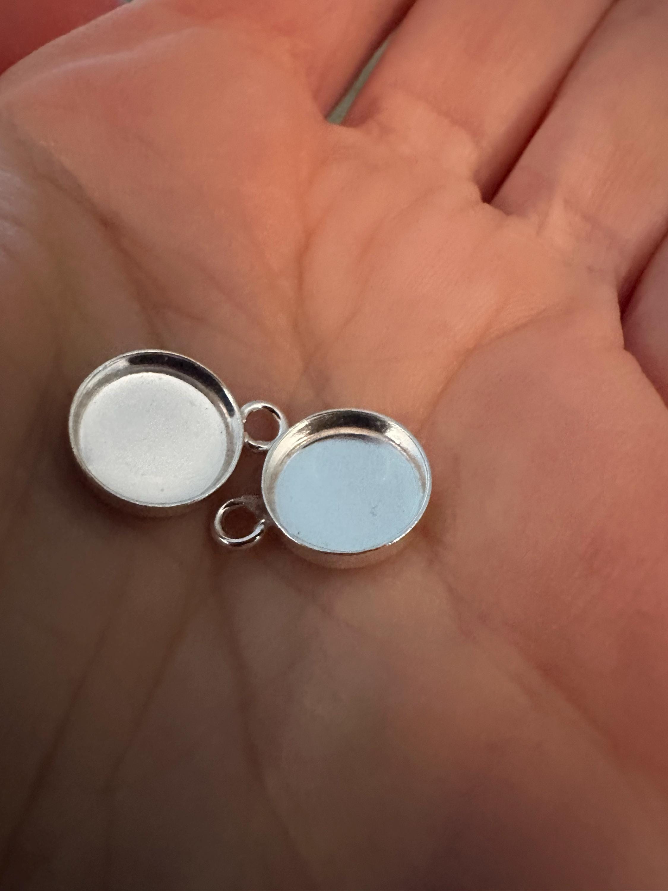 This sterling silver round bezel cup setting (10x10mm) with a closed back design is a versatile blank base for DIY jewelry making. Perfect for earrings or pendants, it securely holds resin, ashes, breast milk, hair, gemstones, or mini photos, making it ideal for keepsake and memorial jewelry. Crafted in high-quality silver with a polished finish, this bezel setting provides durability and shine for custom handmade creations.