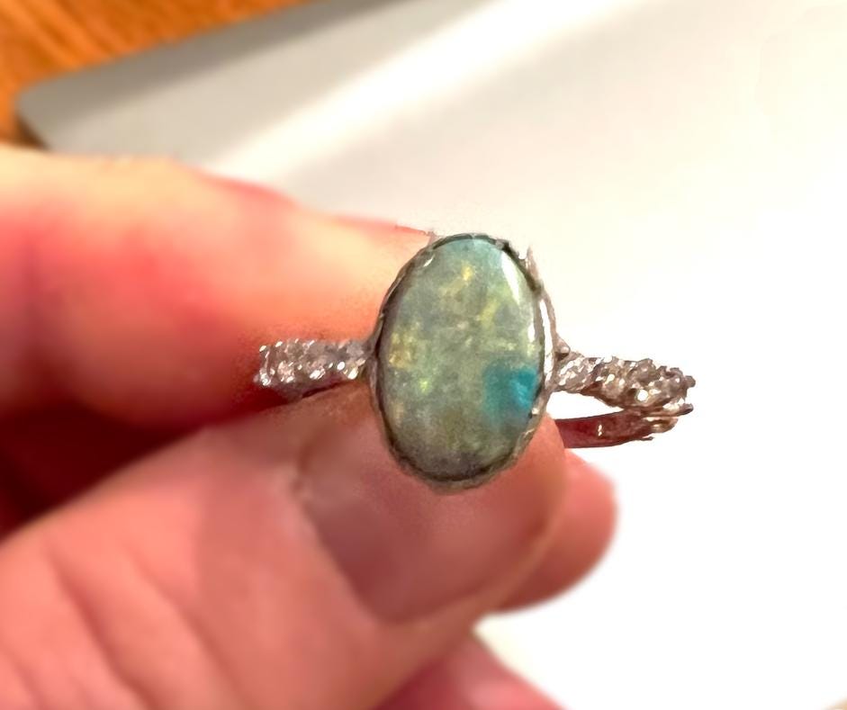 The oval bezel cup is perfectly sized for standard 8x12 mm cabochons, including natural gemstones, glass cabochons, resin creations, enamel inserts, and cameo designs. Eight cubic zirconia side stones add refined brilliance, giving your finished ring a luxurious fine jewelry look.